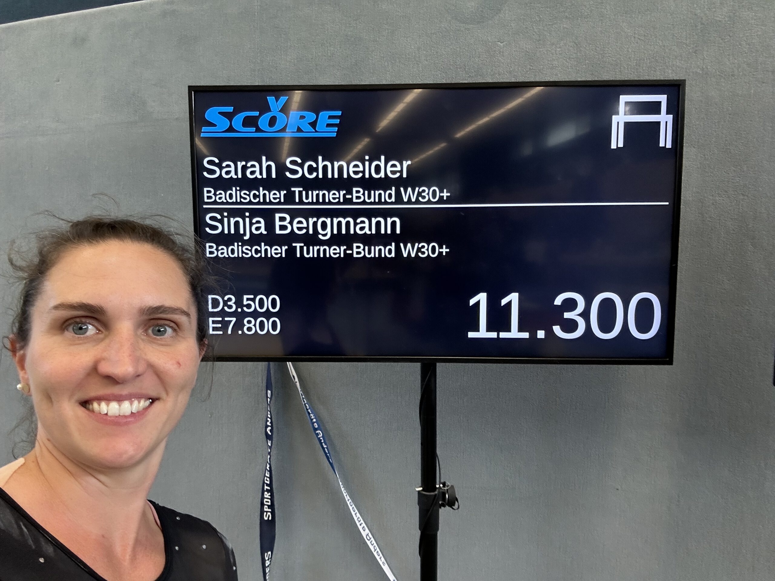 Ein besonderes Highlight aus bahlinger Sicht: Sinja Bergmann vom TV Bahlingen feierte ihr Debüt in der Altersklasse 30+. Die zweifache Mutter startete erstmals beim Deutschlandpokal und war zugleich die älteste Turnerin ihrer Mannschaft. Mit beeindruckender Präsenz am Boden und einem dynamischen Sprung bewies sie, dass Erfahrung und mentale Stärke entscheidend sind. Ihr Auftritt wurde von Publikum und Kampfrichtern gleichermaßen gefeiert.