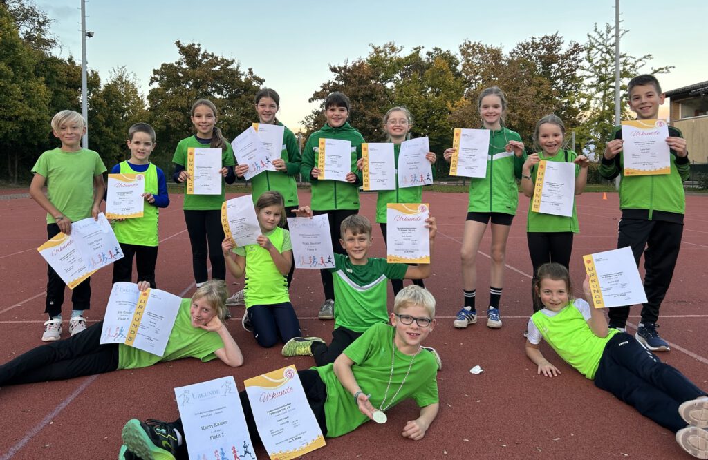 Ihringen, 12. Oktober 2025 – Bei bestem Herbstwetter fanden am Sonntag die Vereinsmeisterschaften in Ihringen statt. 16 motivierte Kinder des TV Bahlingen (TVB) gingen im klassischen Dreikampf – Ballwurf, Weitsprung und 50-Meter-Sprint – an den Start und zeigten starke Leistungen.